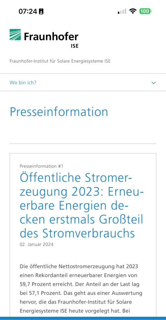 —> Alle von Euch heraufbeschworenen Horrorszenarien wie Blackout, steigende Strompreise oder eine Verschlechterung der CO2-Bilanz sind ausgeblieben. Im Gegenteil. Kein Blackout, sinkende Stromkosten und der deutsche Strommix ist so sauber wie nie zuvor.