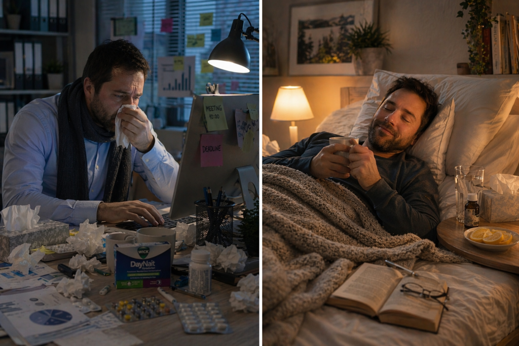 Viele Menschen versuchen, trotz Erkältung einfach weiterzufunktionieren – und genau das kann den Infekt verlängern.