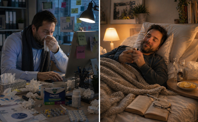 Resümee: Die größte Täuschung bei Erkältung und grippalem Infekt ist die Vorstellung, man könne Heilung mit Symptombekämpfung verwechseln. Wer Beschwerden nur zudeckt und sich nicht schont, läuft Gefahr, länger krank zu sein als nötig. Gesund wird man nicht dadurch, dass man nichts mehr merkt – sondern dadurch, dass der Körper genug Zeit bekommt, den Infekt wirklich zu überwinden.