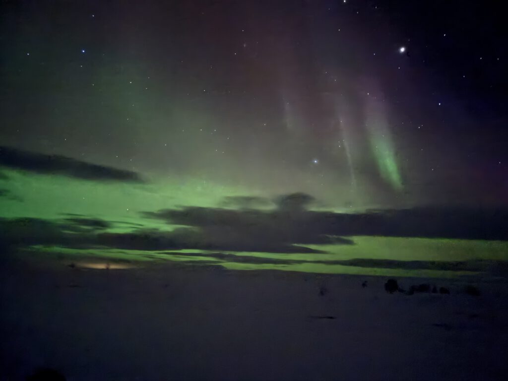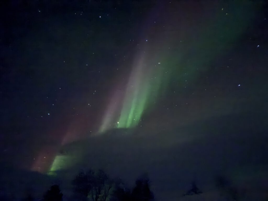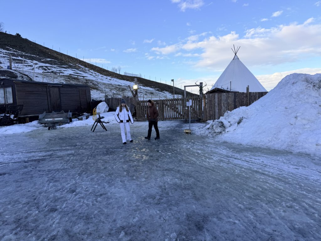 Doch das Leben mit Rentieren ist nicht nur romantisch. Rivalitäten unter männlichen Tieren können gefährlich werden. Unsere Gastgeberin erzählte, wie zwei aggressive Bullen eine ältere Rentierkuh so schwer verletzten, dass sie eingeschläfert werden musste. Deshalb werden manche Tiere zeitweise angebunden oder getrennt gehalten.
