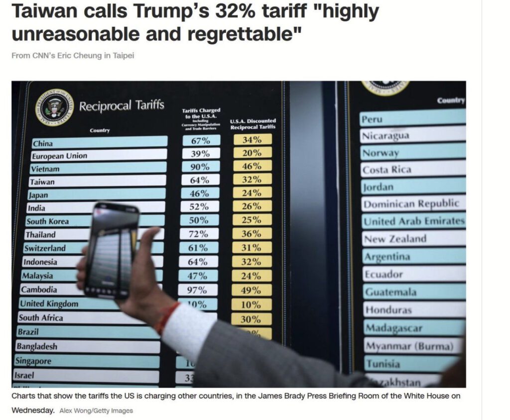 Das heißt: Es handelt sich nicht um echte Zölle, die andere Länder offiziell auf US-Waren erheben, sondern um einen subjektiven „Nachteilsquotienten“, den Trumps Team zusammengerechnet hat. Er basiert auf Handelsbilanzdefiziten, mutmaßlichen Währungsmanipulationen und sogar dem amerikanischen Konsumverhalten – wie etwa, dass US-Bürger gerne bei chinesischen Online-Shops wie Temu einkaufen oder iPhones importieren.